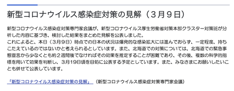 「新型コロナウイルス感染症対策専門家会議の見解」をみつけました。